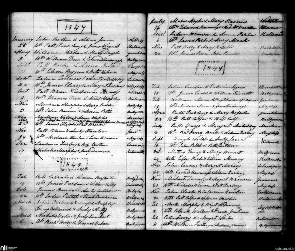Ballymore; County of Wexford; Diocese of Ferns. Marriages, Jan. 1847 to Nov. 1849