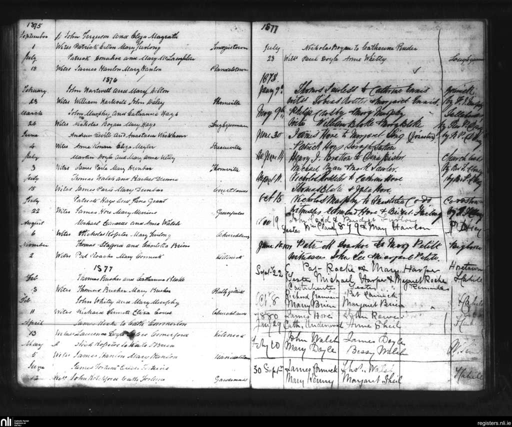 Ballymore; County of Wexford; Diocese of Ferns. Marriages, July 1875 to Sep. 1880