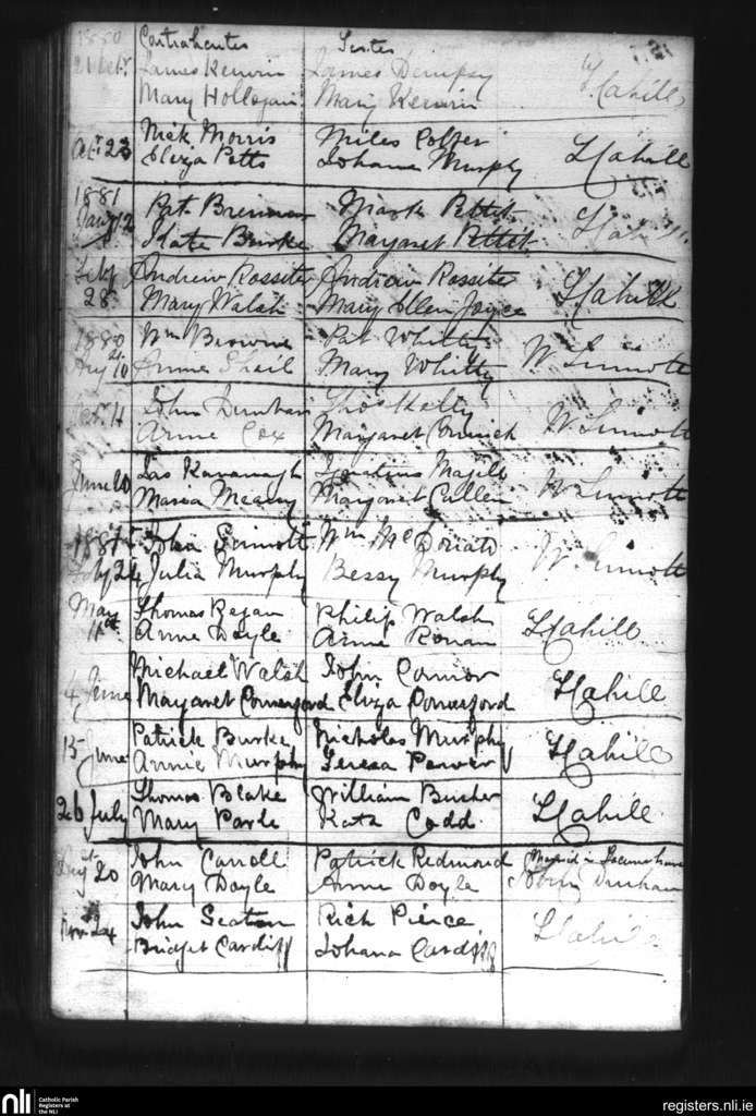 Ballymore; County of Wexford; Diocese of Ferns. Marriages, Oct. 1880 to Nov. 1881