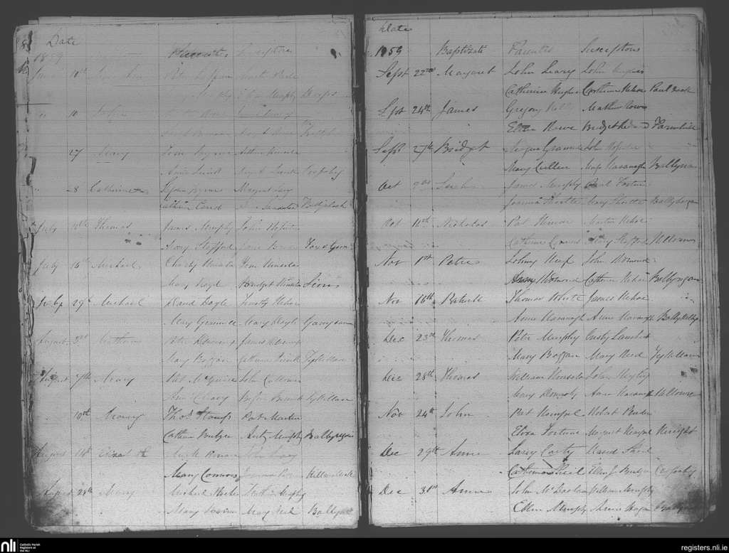Crossabeg; County of Wexford; Diocese of Ferns. Baptisms, June 1859 to Dec. 1859