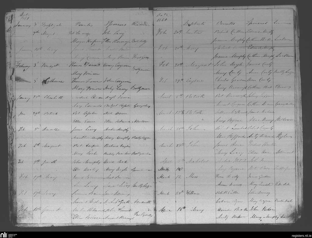Crossabeg; County of Wexford; Diocese of Ferns. Baptisms, Jan. 1860 to Apr. 1860
