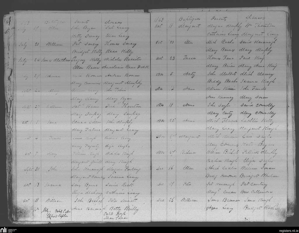 Crossabeg; County of Wexford; Diocese of Ferns. Baptisms, July 1863 to Dec. 1863