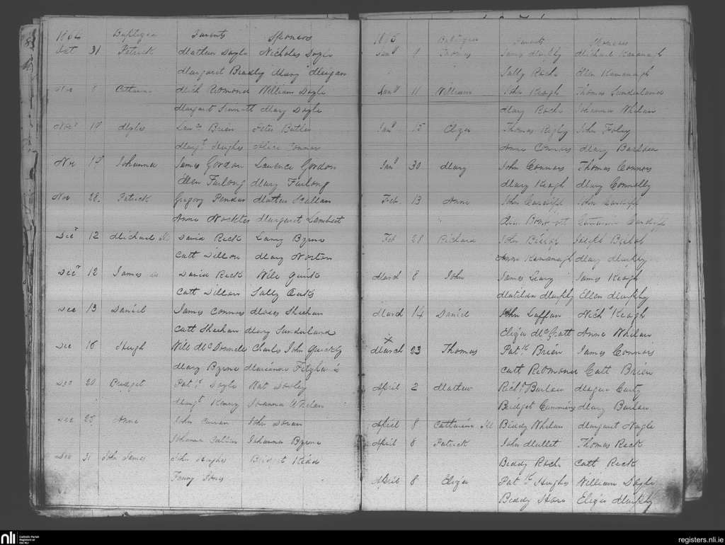 Crossabeg; County of Wexford; Diocese of Ferns. Baptisms, Oct. 1864 to Apr. 1865