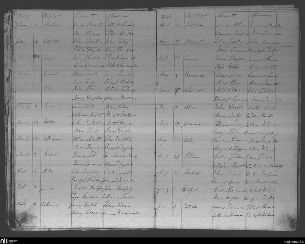 Crossabeg; County of Wexford; Diocese of Ferns. Baptisms, Feb. 1868 to June 1868
