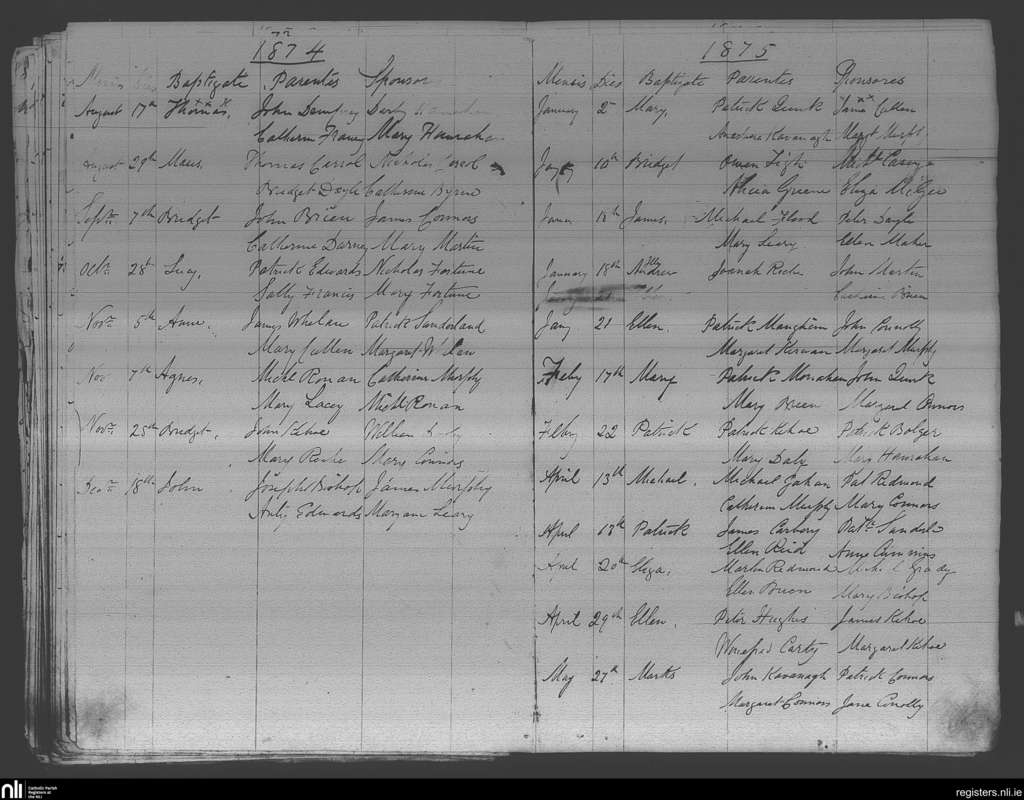 Crossabeg; County of Wexford; Diocese of Ferns. Baptisms, Aug. 1874 to May 1875