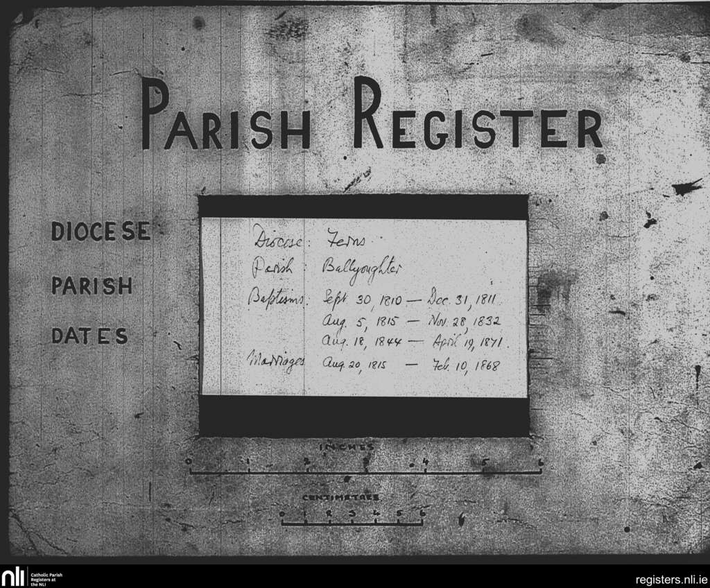 Ballyoughter; County of Wexford; Diocese of Ferns. Baptisms, Marriages