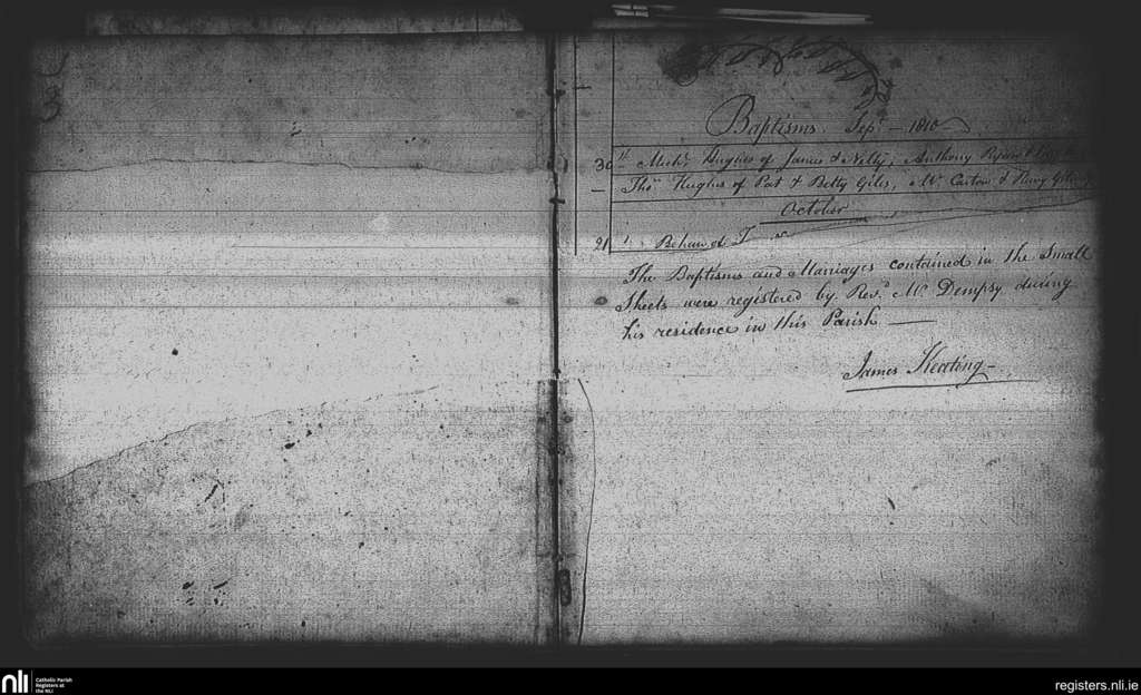 Ballyoughter; County of Wexford; Diocese of Ferns. Baptisms, Sep. 1810 to Oct. 1810