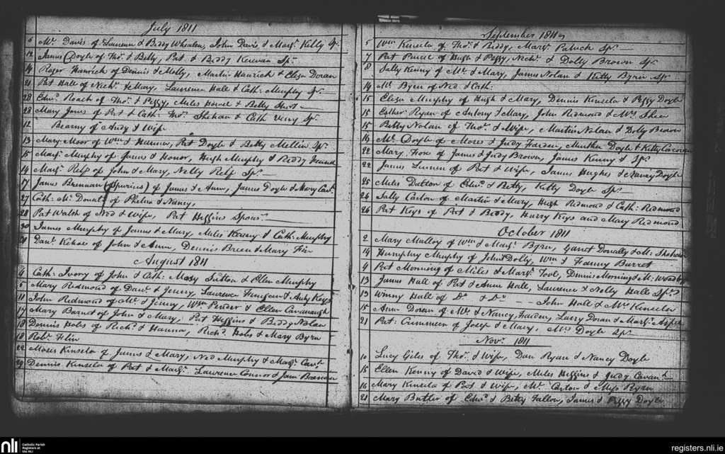 Ballyoughter; County of Wexford; Diocese of Ferns. Baptisms, July 1811 to Nov. 1811