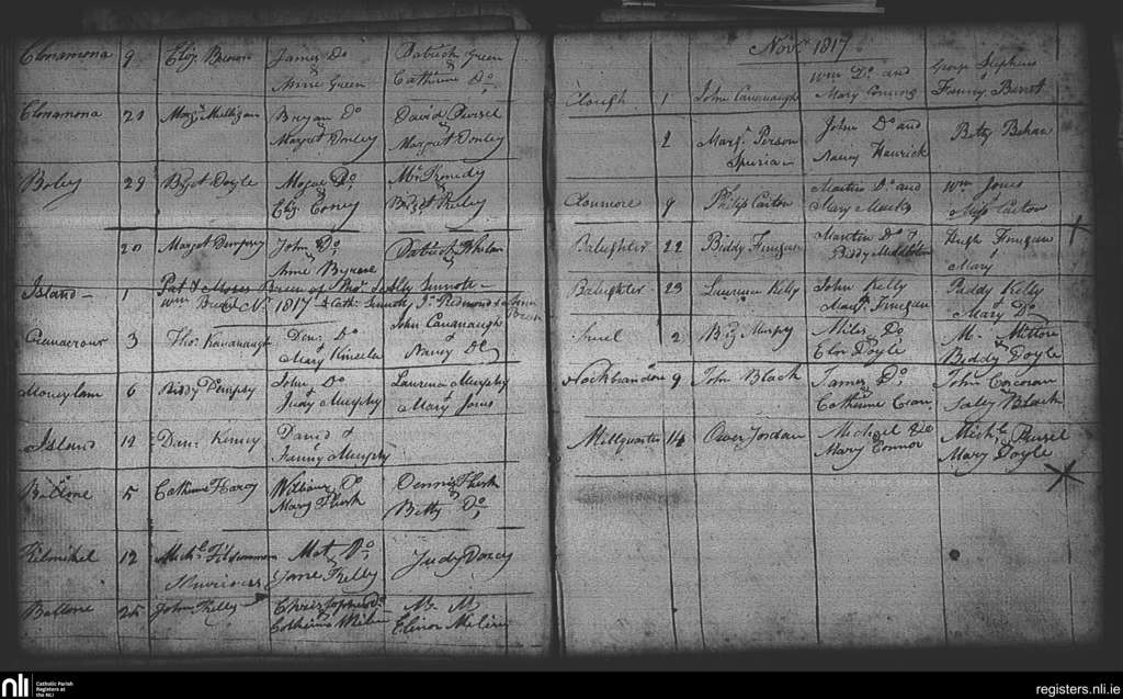 Ballyoughter; County of Wexford; Diocese of Ferns. Baptisms, Sep. 1817 to Nov. 1817