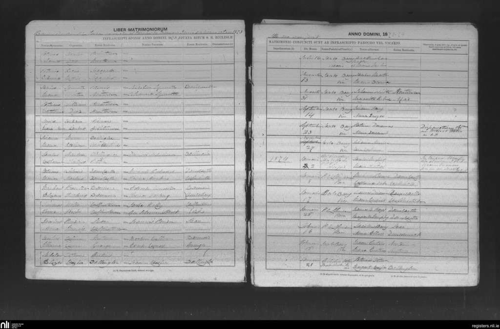 Carrick-on-Bannow; County of Wexford; Diocese of Ferns. Marriages, July 1873 to Feb. 1874