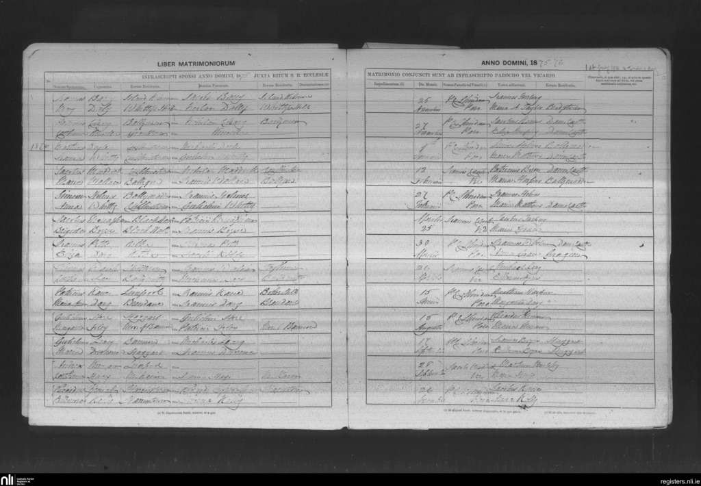 Carrick-on-Bannow; County of Wexford; Diocese of Ferns. Marriages, Nov. 1875 to Sep. 1876