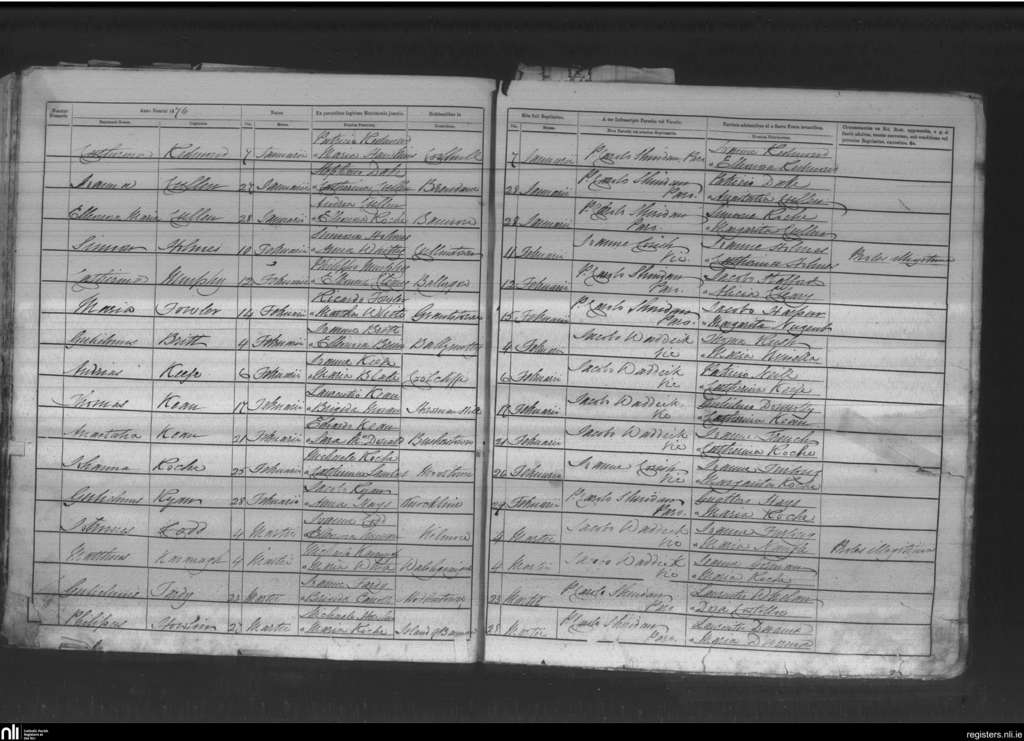 Carrick-on-Bannow; County of Wexford; Diocese of Ferns. Baptisms, Jan. 1876 to Mar. 1876