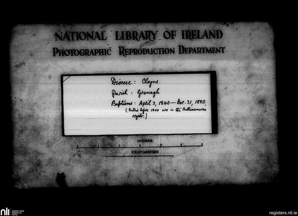 Grenagh; County of Cork; Diocese of Cloyne. Baptisms
