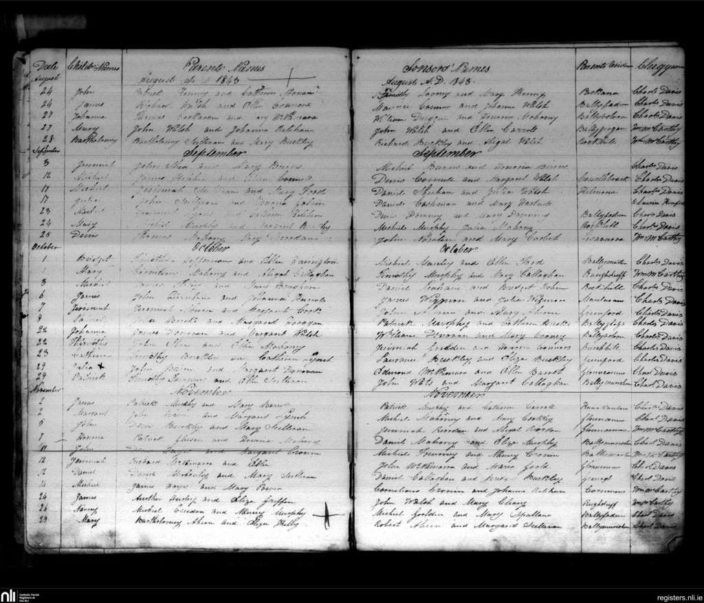 Grenagh; County of Cork; Diocese of Cloyne. Baptisms, Aug. 1843 to Nov. 1843