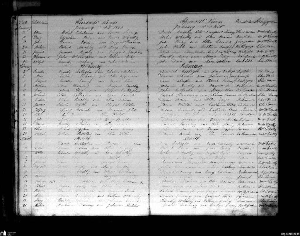 Grenagh; County of Cork; Diocese of Cloyne. Baptisms, Jan. 1845 to Mar. 1845