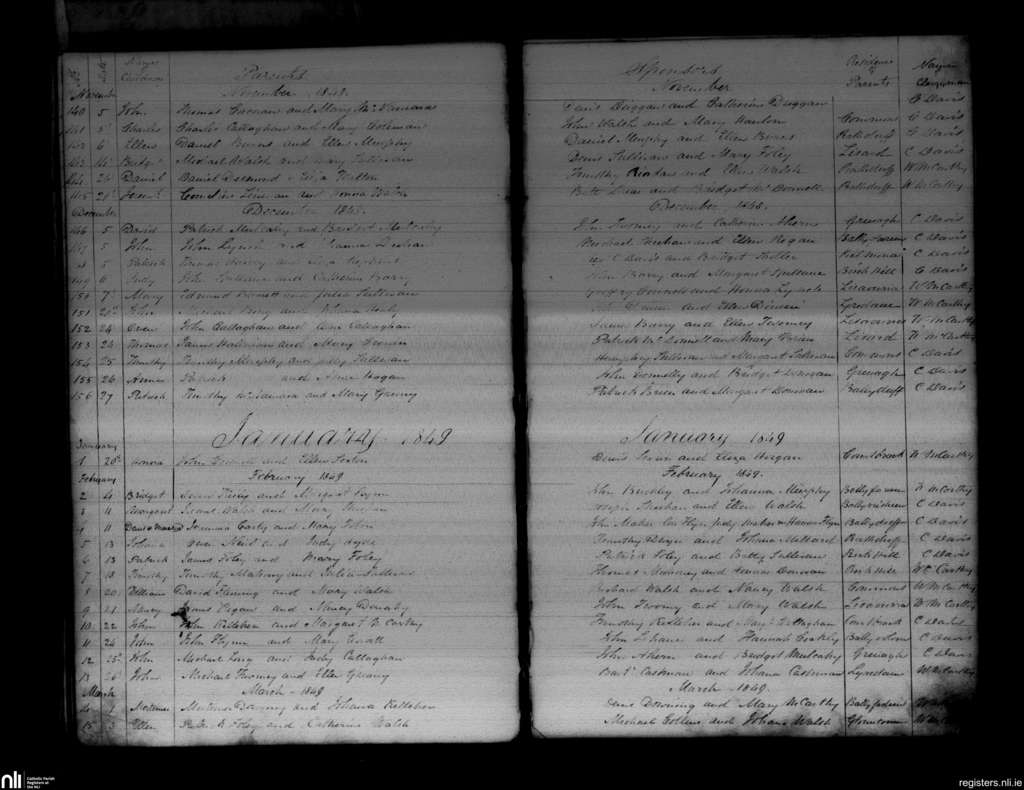 Grenagh; County of Cork; Diocese of Cloyne. Baptisms, Nov. 1848 to Mar. 1849