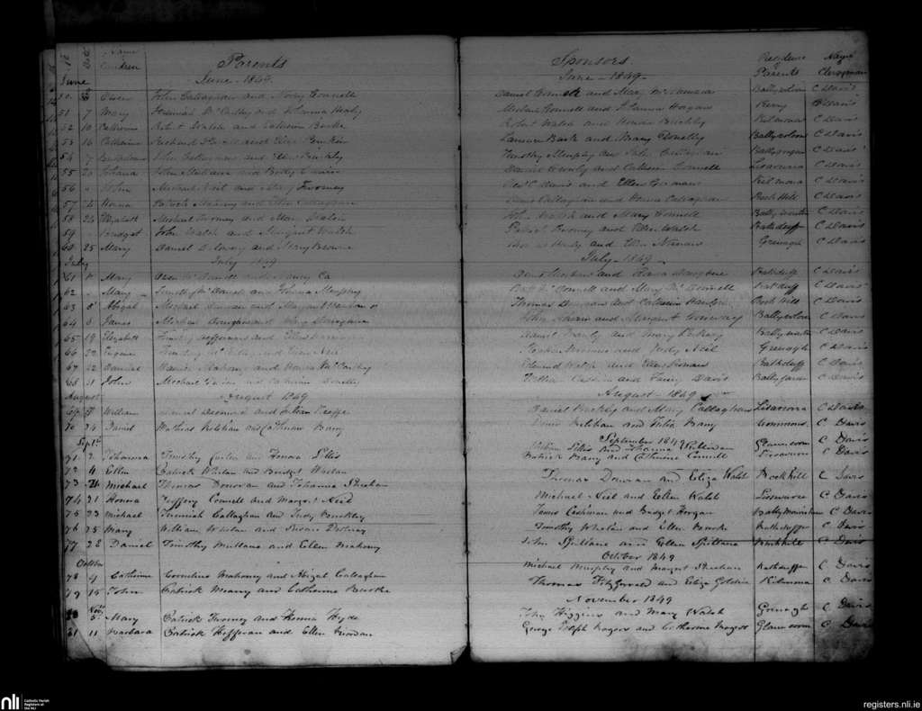 Grenagh; County of Cork; Diocese of Cloyne. Baptisms, June 1849 to Nov. 1849