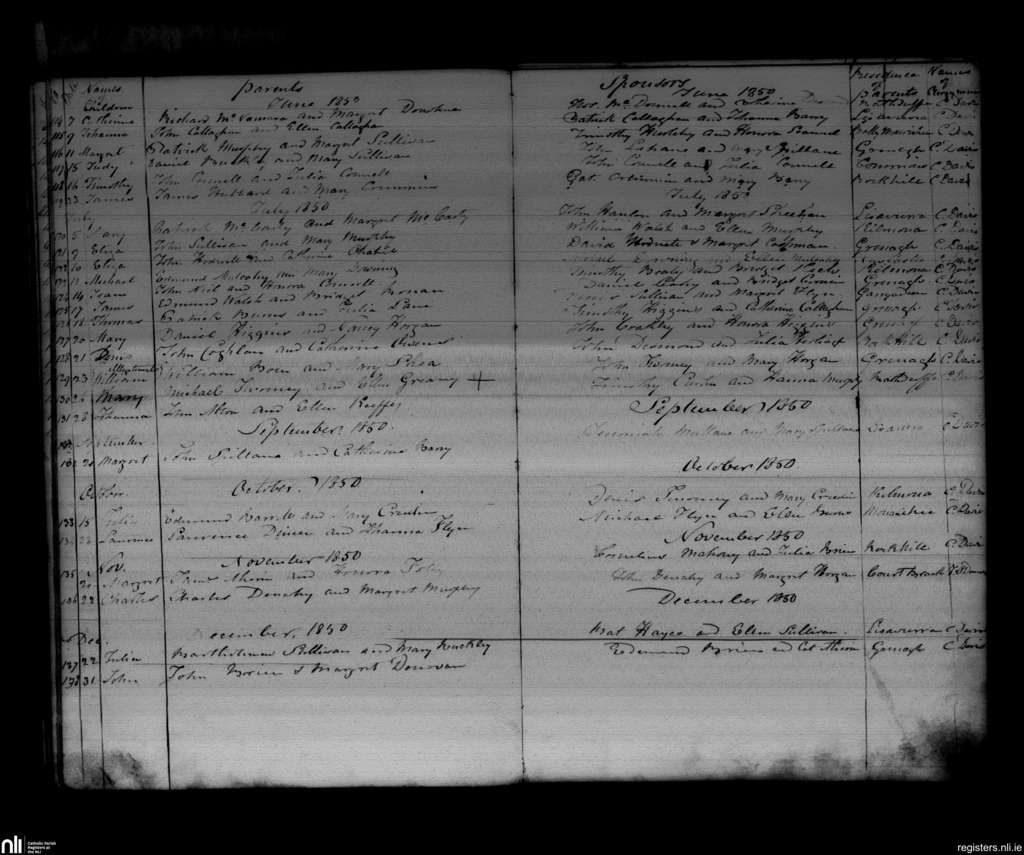 Grenagh; County of Cork; Diocese of Cloyne. Baptisms, June 1850 to Dec. 1850