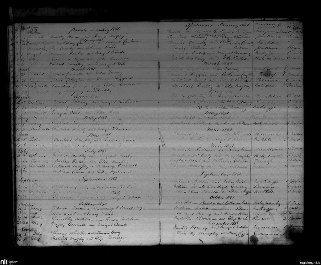 Grenagh; County of Cork; Diocese of Cloyne. Baptisms, Jan. 1851 to Nov. 1851