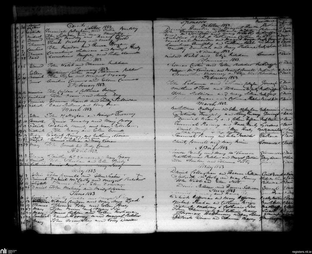 Grenagh; County of Cork; Diocese of Cloyne. Baptisms, Oct. 1852 to June 1853