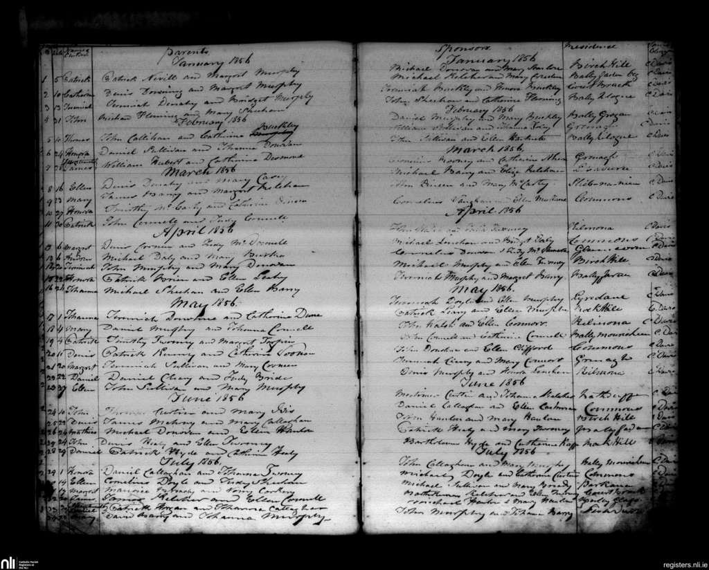 Grenagh; County of Cork; Diocese of Cloyne. Baptisms, Jan. 1856 to July 1856