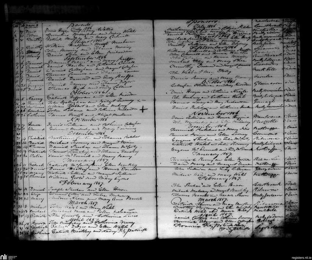 Grenagh; County of Cork; Diocese of Cloyne. Baptisms, July 1856 to Apr. 1857