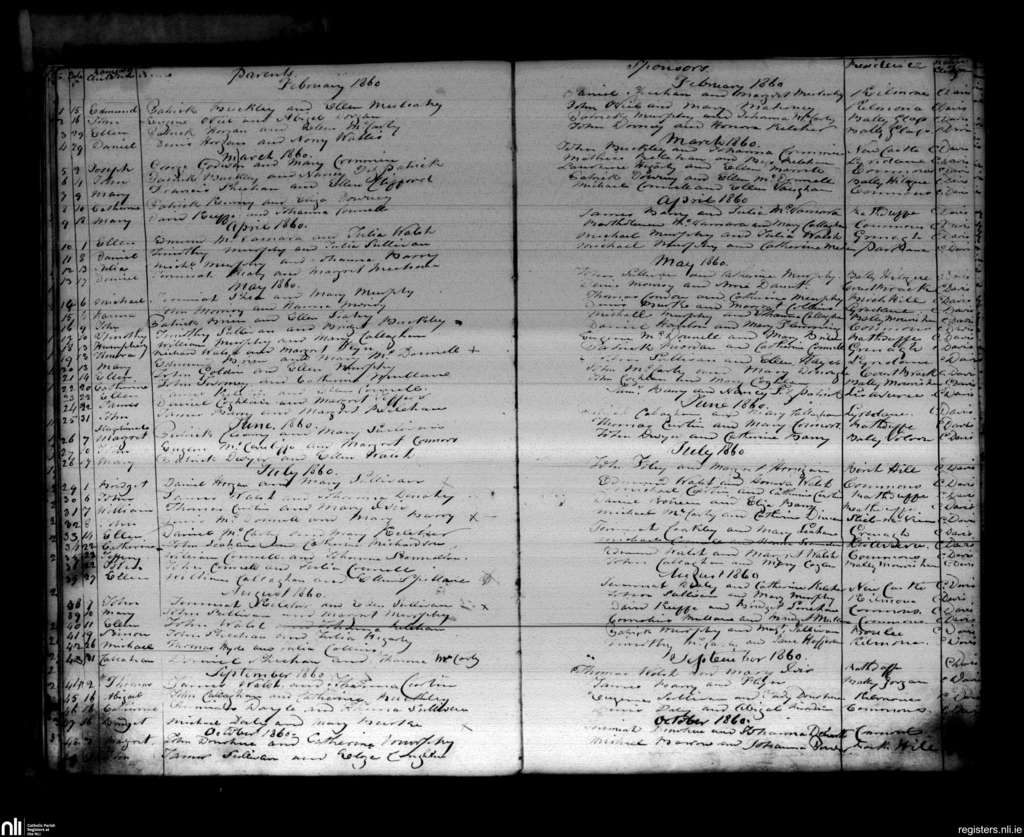 Grenagh; County of Cork; Diocese of Cloyne. Baptisms, Feb. 1860 to Oct. 1860
