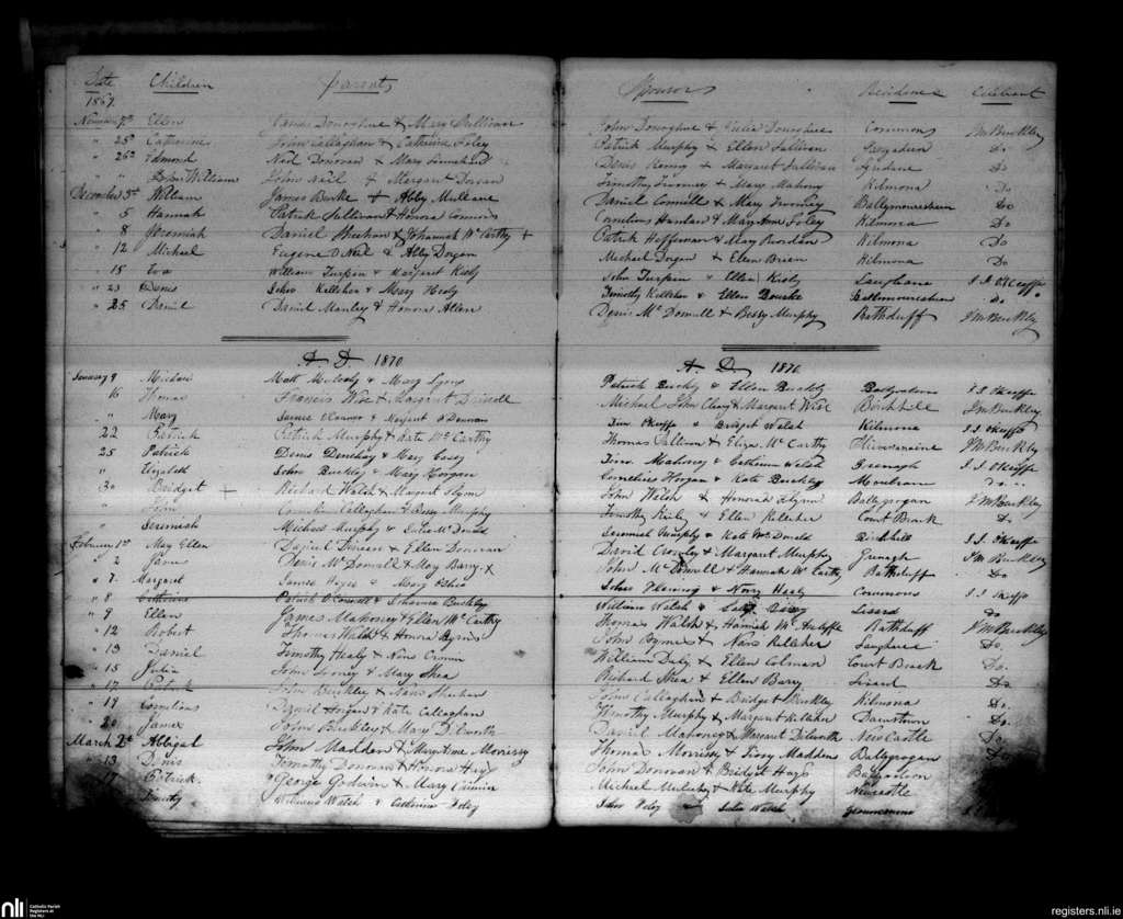 Grenagh; County of Cork; Diocese of Cloyne. Baptisms, Nov. 1869 to Mar. 1870