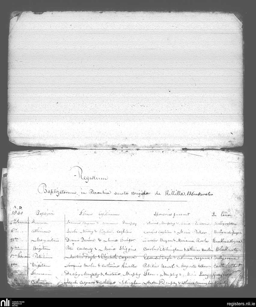 Blackwater; County of Wexford; Diocese of Ferns. Baptisms, Jan. 1840 to Feb. 1840