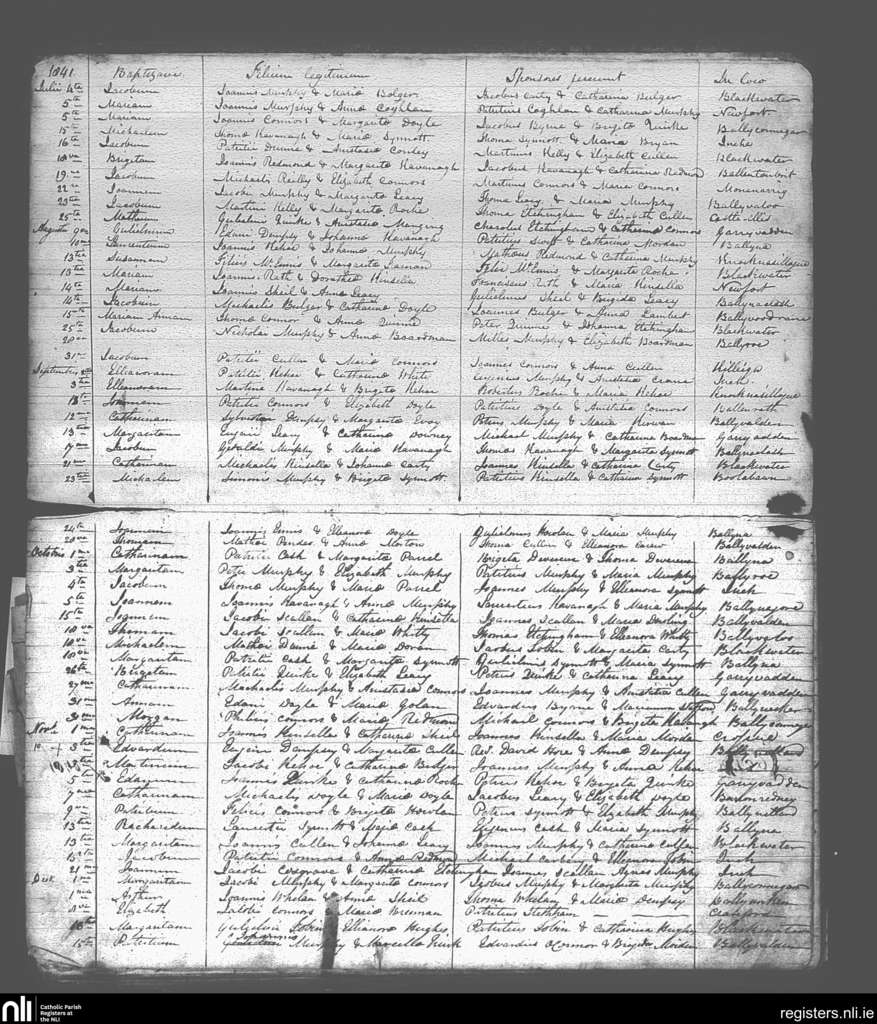 Blackwater; County of Wexford; Diocese of Ferns. Baptisms, July 1841 to Dec. 1841