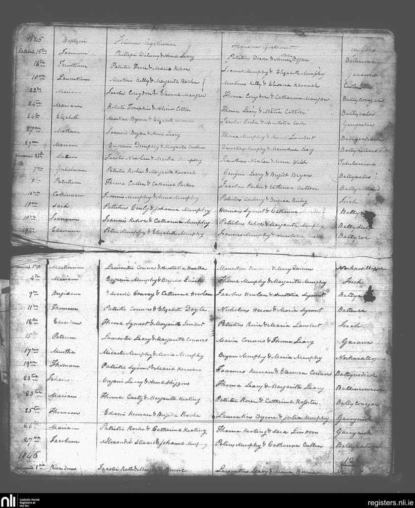 Blackwater; County of Wexford; Diocese of Ferns. Baptisms, Oct. 1845 to Jan. 1846