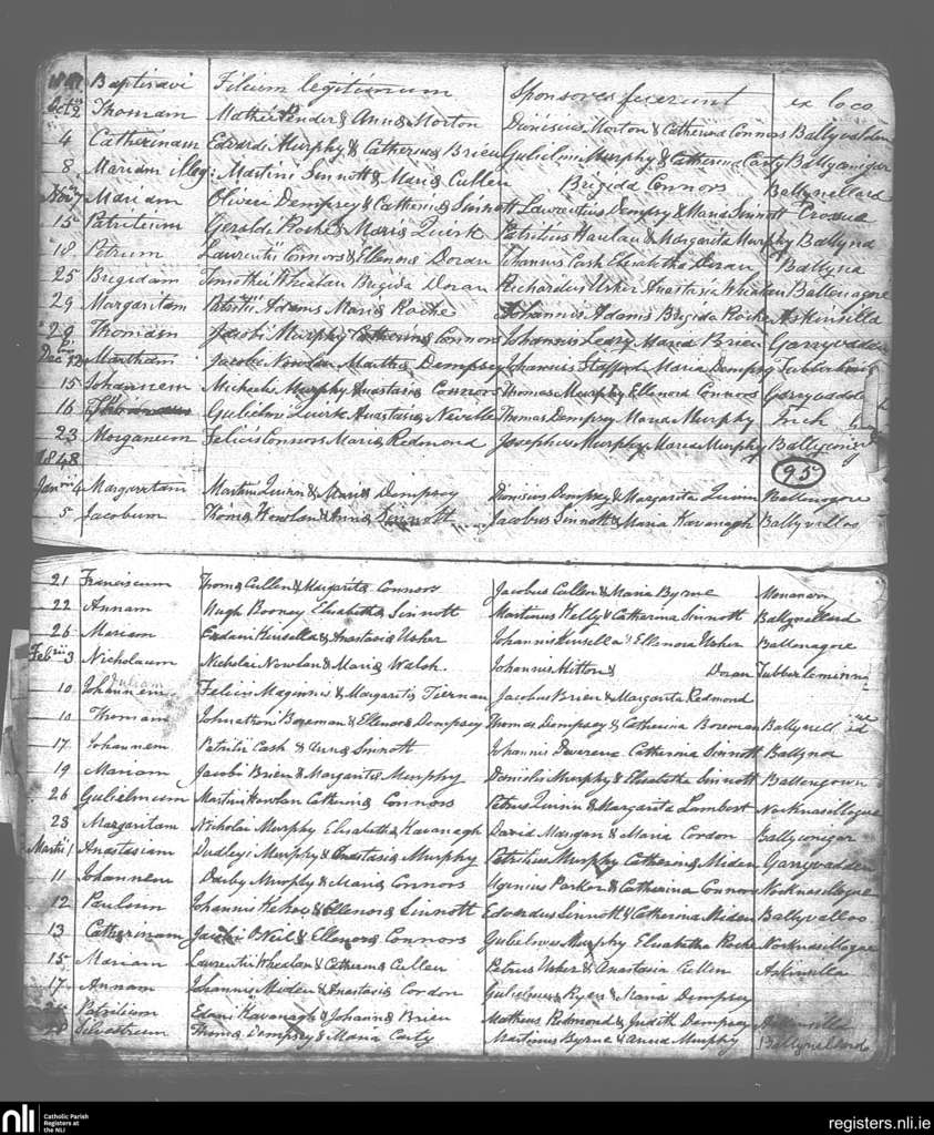 Blackwater; County of Wexford; Diocese of Ferns. Baptisms, Oct. 1847 to Mar. 1848