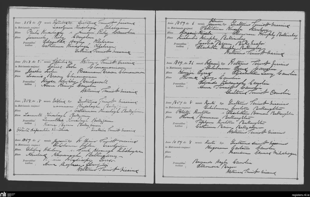 Camolin; County of Wexford; Diocese of Ferns. Marriages, Sep. 1858 to Mar. 1859