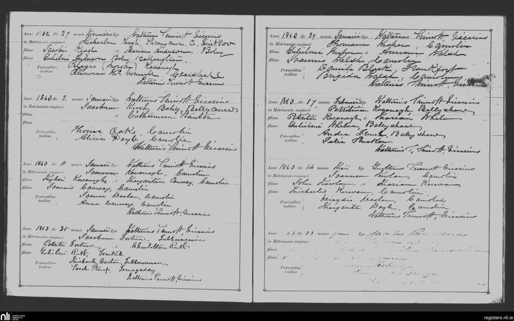 Camolin; County of Wexford; Diocese of Ferns. Marriages, Nov. 1862 to June 1863