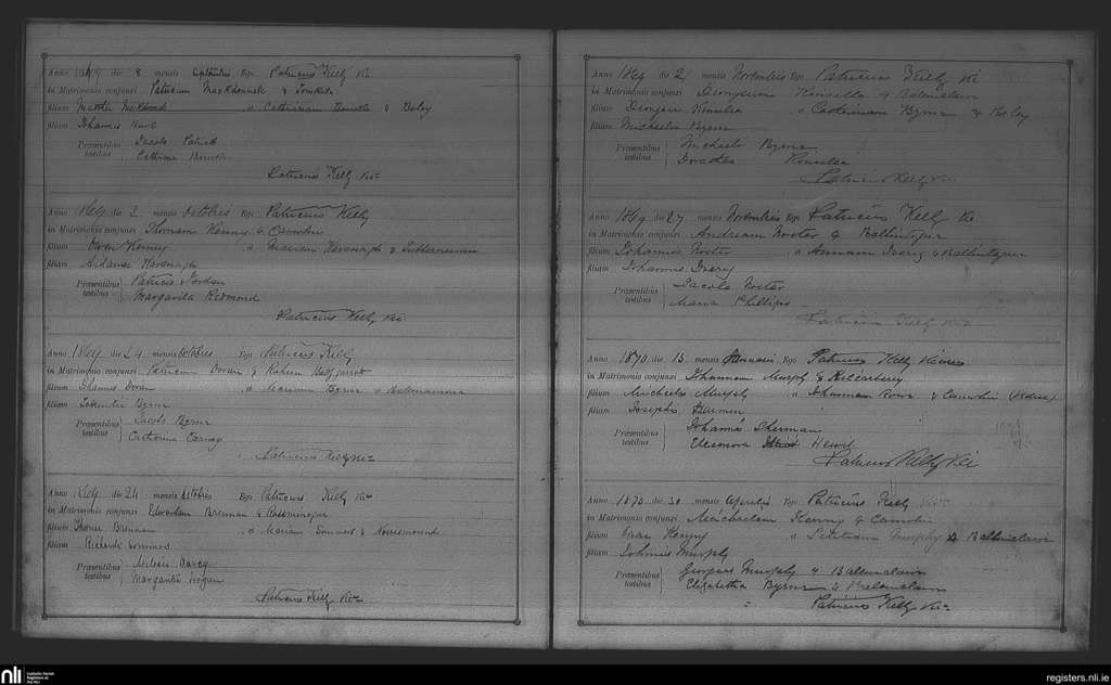 Camolin; County of Wexford; Diocese of Ferns. Marriages, Sep. 1869 to Apr. 1870