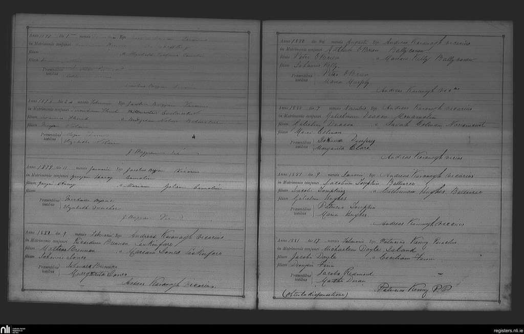 Camolin; County of Wexford; Diocese of Ferns. Marriages, Dec. 1877 to Feb. 1881