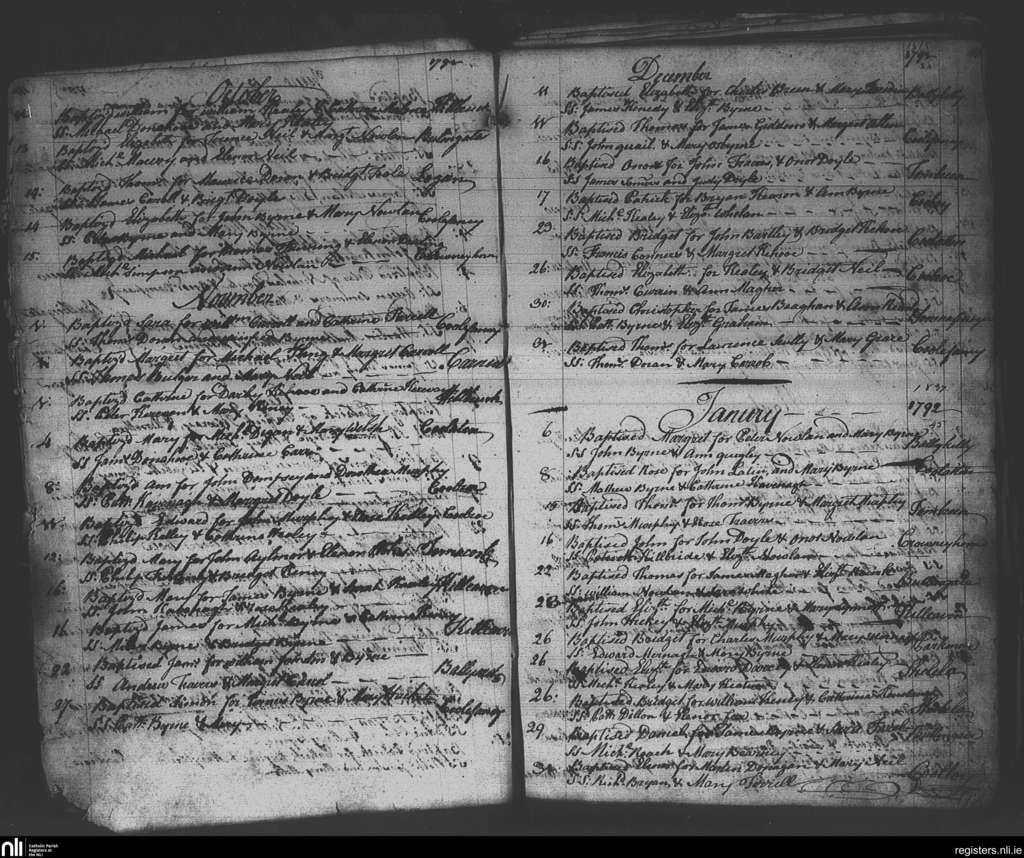 Tomacork; County of Wexford, Wicklow; Diocese of Ferns. Baptisms, Oct. 1791 to Jan. 1792