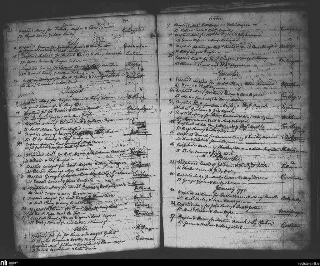 Tomacork; County of Wexford, Wicklow; Diocese of Ferns. Baptisms, June 1792 to Jan. 1793