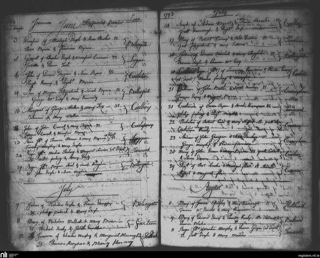 Tomacork; County of Wexford, Wicklow; Diocese of Ferns. Baptisms, June 1793 to Aug. 1793