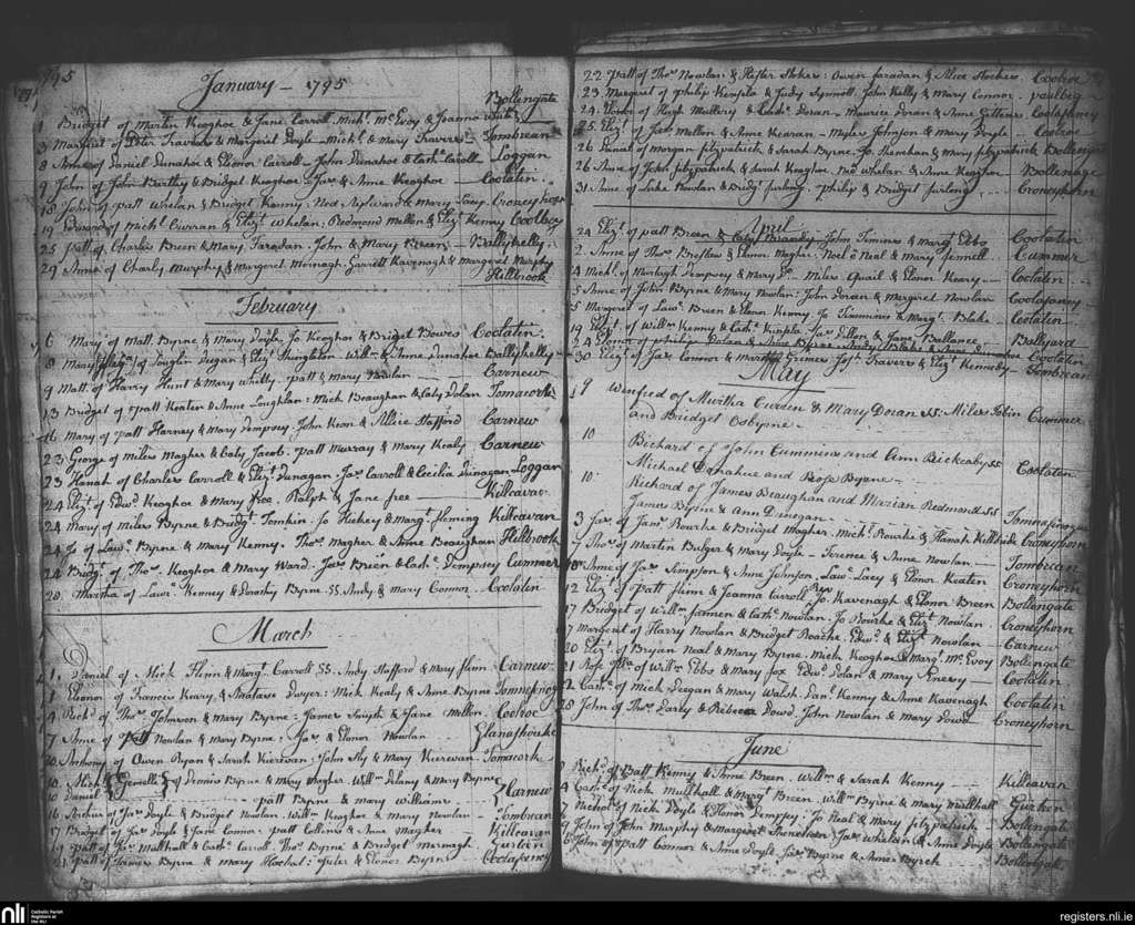 Tomacork; County of Wexford, Wicklow; Diocese of Ferns. Baptisms, Jan. 1795 to June 1795