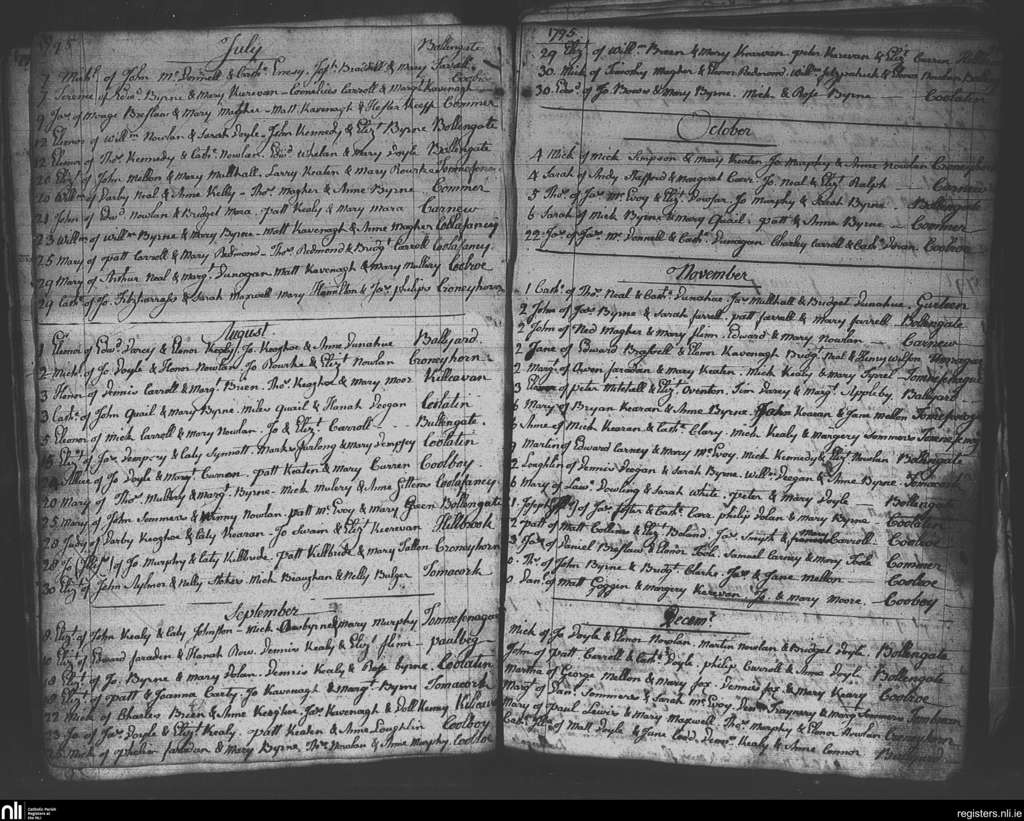 Tomacork; County of Wexford, Wicklow; Diocese of Ferns. Baptisms, July 1795 to Dec. 1795