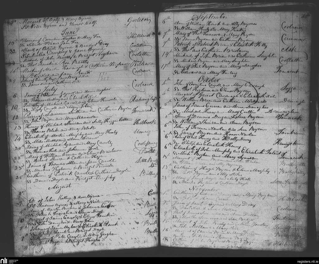 Tomacork; County of Wexford, Wicklow; Diocese of Ferns. Baptisms, May 1807 to Nov. 1807