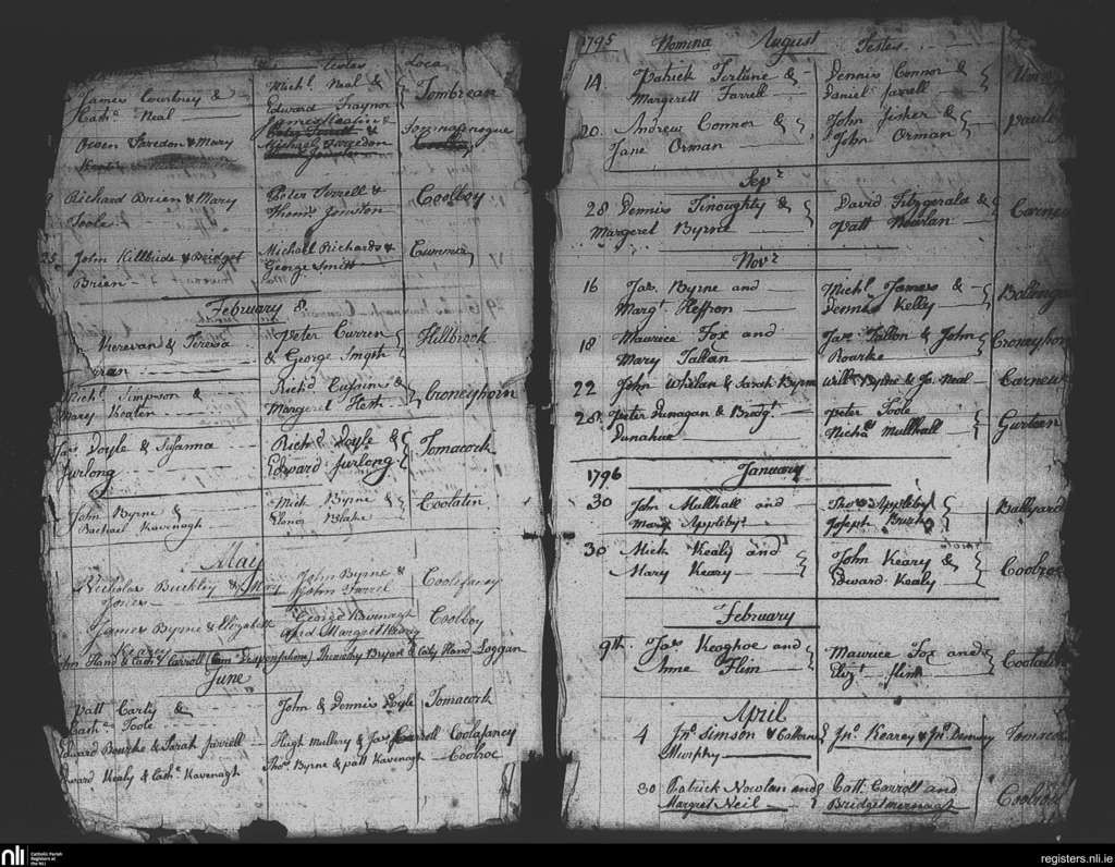 Tomacork; County of Wexford, Wicklow; Diocese of Ferns. Marriages, Jan. 1795 to Apr. 1796