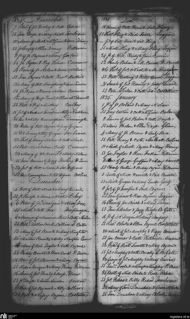 Tomacork; County of Wexford, Wicklow; Diocese of Ferns. Baptisms, Nov. 1834 to Jan. 1835