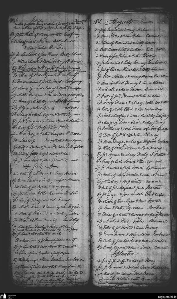 Tomacork; County of Wexford, Wicklow; Diocese of Ferns. Baptisms, June 1836 to Sep. 1836