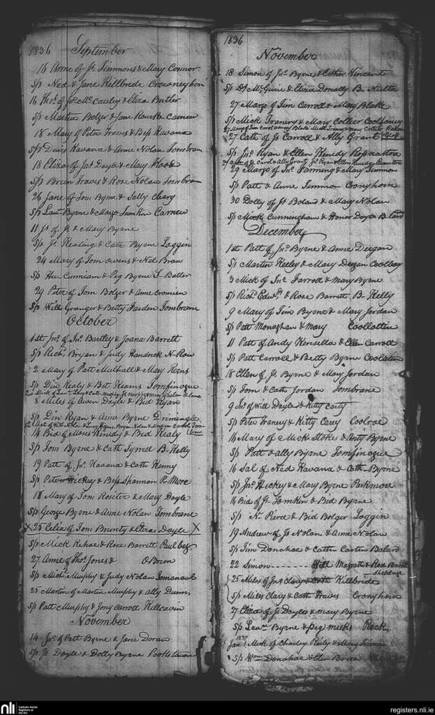 Tomacork; County of Wexford, Wicklow; Diocese of Ferns. Baptisms, Sep. 1836 to Jan. 1837