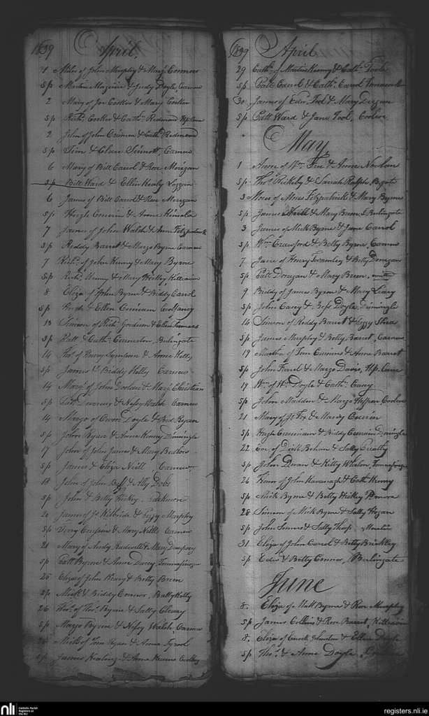 Tomacork; County of Wexford, Wicklow; Diocese of Ferns. Baptisms, Apr. 1839 to June 1839