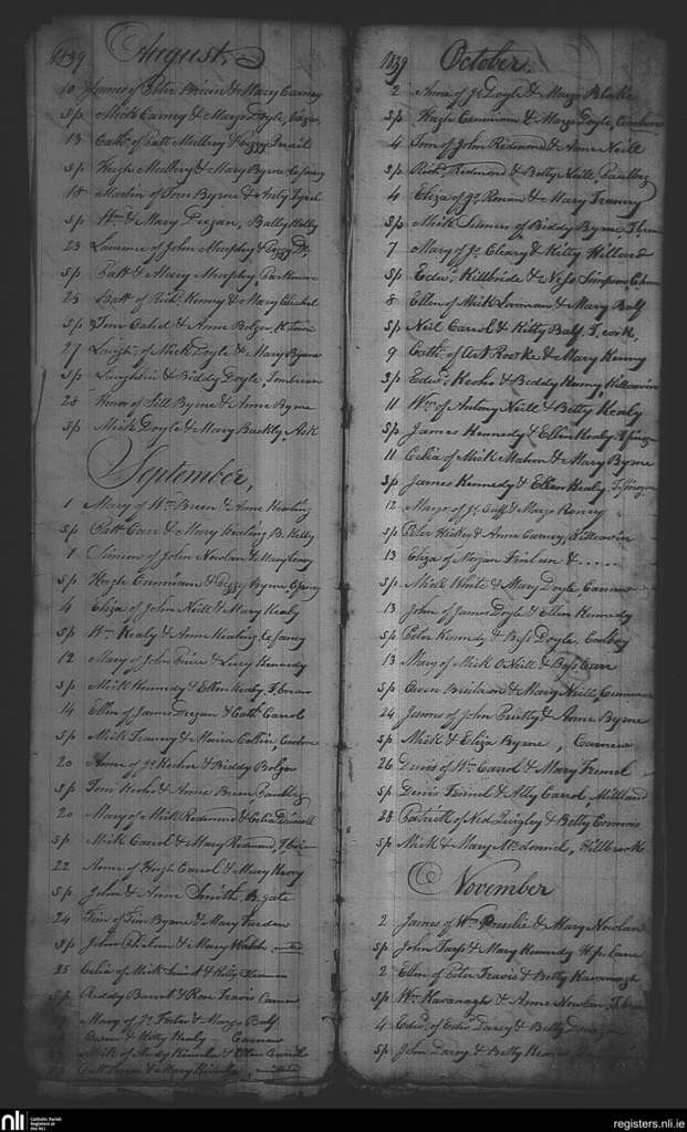 Tomacork; County of Wexford, Wicklow; Diocese of Ferns. Baptisms, Aug. 1839 to Nov. 1839