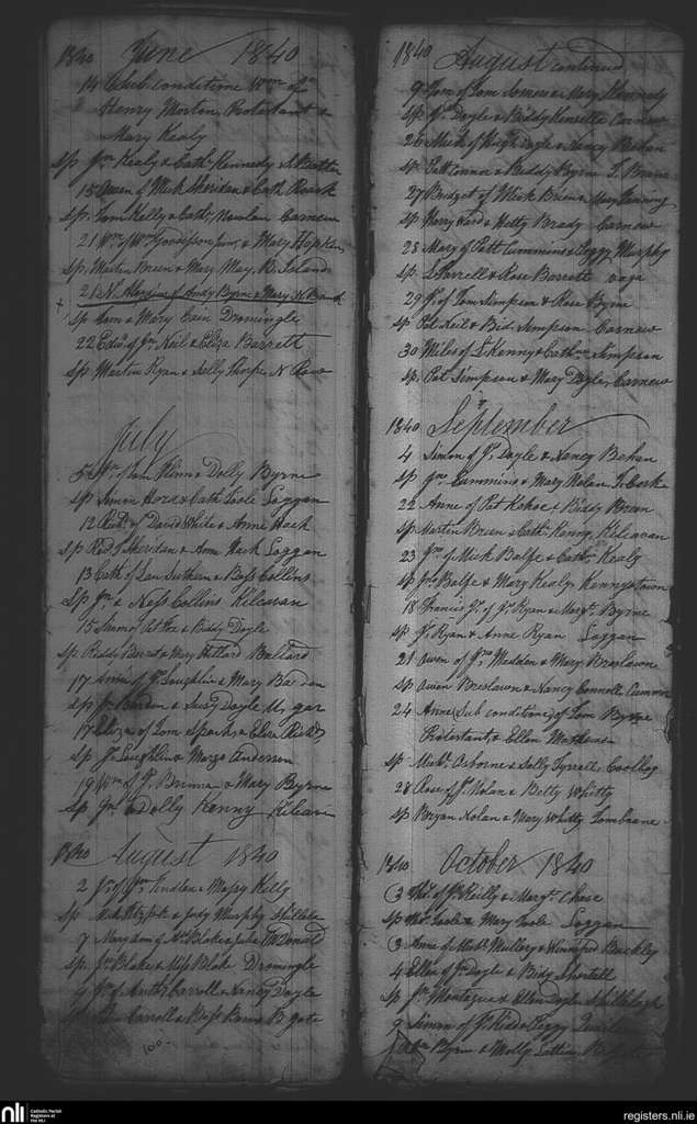 Tomacork; County of Wexford, Wicklow; Diocese of Ferns. Baptisms, June 1840 to Oct. 1840