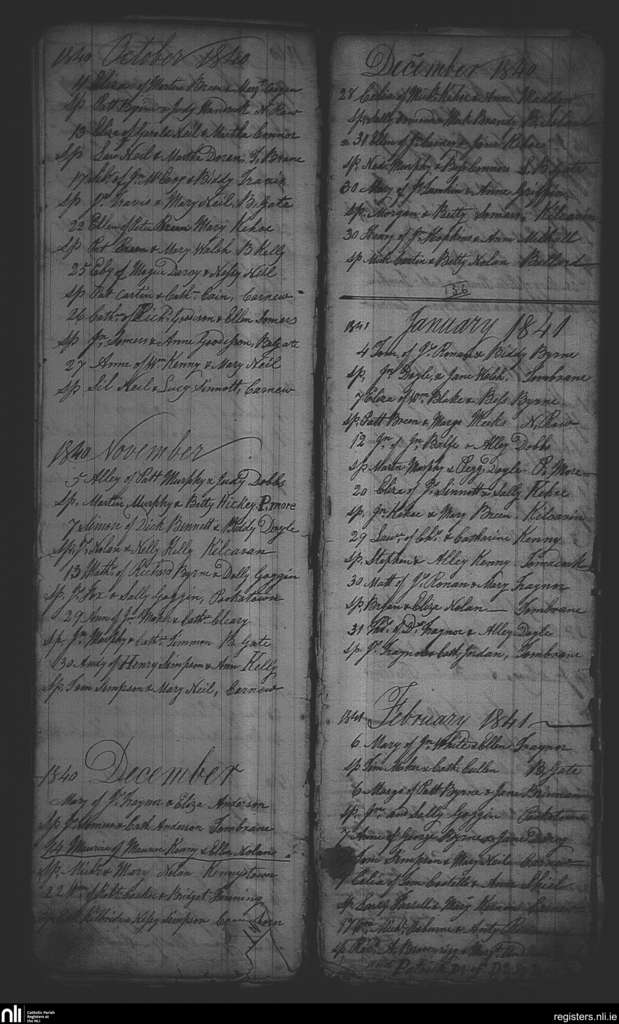 Tomacork; County of Wexford, Wicklow; Diocese of Ferns. Baptisms, Oct. 1840 to Feb. 1841